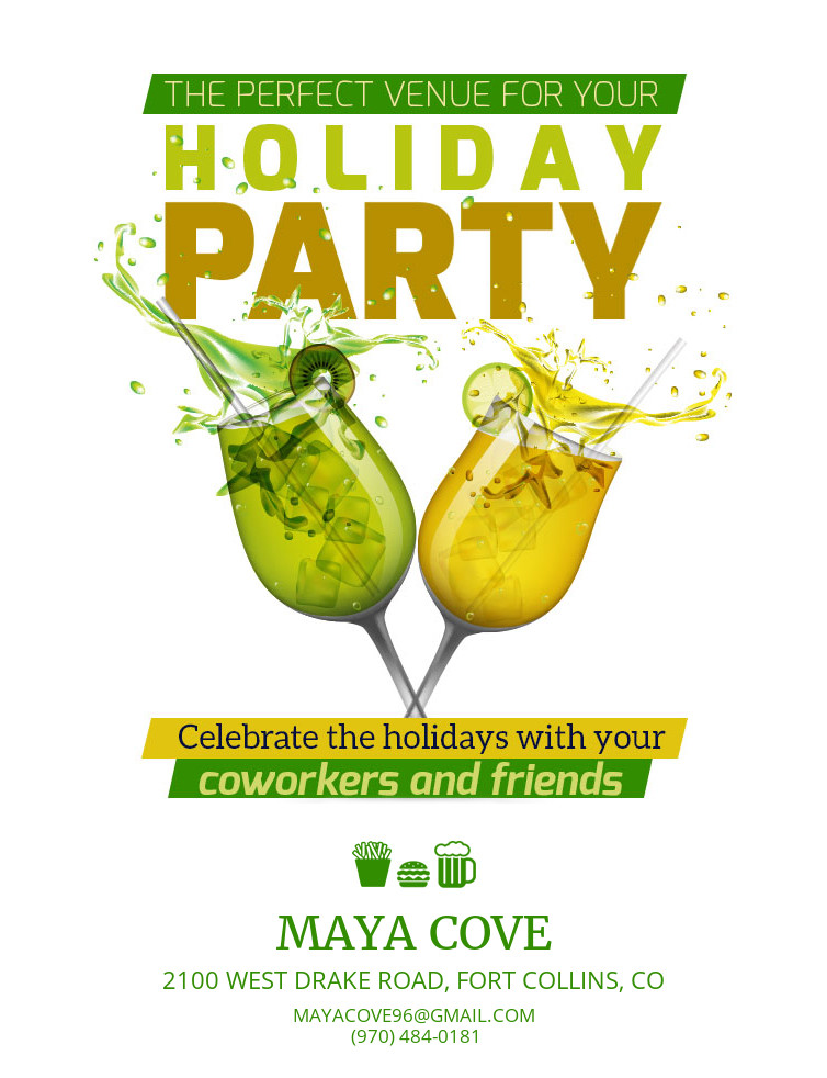 Welcome to Maya Cove. Ft. Collins ONLY official Crimson Tide neighborhood Bar 'n Grill serving a lil bit a everything. App's, 1/2 LB. Burgers, Signature Sandwiches, Salads, Tacos, Seafood, and The BEST in BAMA style BBQ. We have a full bar and proudly serve Herradura Double Barrel Reposado Tequila, distilled specifically for Maya Cove. See ya'll soon. ROLL TIDE